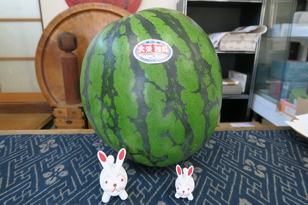 大栄スイカ 鳥取の夏のフルーツを代表するのがこの大栄スイカです。今年も親戚から届き美味しくいただきました。先日は、「スイカながいもマラソン」が北栄町(旧大栄町)であり、全国から大勢のランナーが来られて健脚を競ったそうです。このマラソンのすごいところは、ゴール後にこの大栄スイカを思う存分食べられて、身体もお腹も満喫するところです。我が家も、子供たちが小さい頃、家族みんなで走っておいしいスイカをほおばったことを思い出します。