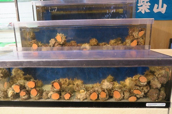 そして、鳥取の夏と言えば、海の幸があります。「岩ガキ」「サザエ」「白いか」が有名です。特に岩ガキは県外の方にとっては珍しく「夏にカキが食べられるのですか?」と驚かれます。岩美町の道の駅「きなんせ岩美」では、土日は、県内外から大勢の方が魚目当てに来られます。新鮮で安い魚介類が店内所せまく並べられています。岩美町の観光の一つになっています。