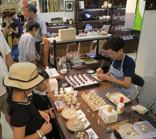 16日17日と、髙島屋での民藝展で実演させていただきました。多くのお客様に見ていただき、おぐら屋の十二支について話を聞いていただきました。お客様の中には以前岩井温泉やおぐら屋の店に来られた方もおられたり、鳥取にご縁のある方もおられたりして、いろんな方と話が弾みました。「辰」が十二支の中で一番作業工程が多くて他の干支人形の1.5倍完成までに時間がかかること、「辰」が記念切手になったこと、十二支ができて今年100年目になることなど、皆さん興味深く聞いていただきました。